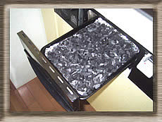 ガスコンロの網を取り出し、乾いた粒を下に敷き詰めます。